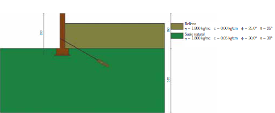 Cálculo del muro mediante programa elementos finitos de uso interno Uretek.